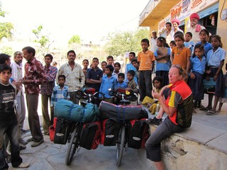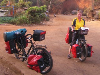 Das Schlimmste aber kommt, wenn wir am frühen Morgen mit unseren voll bepackten Fahrrädern und unseren bunten