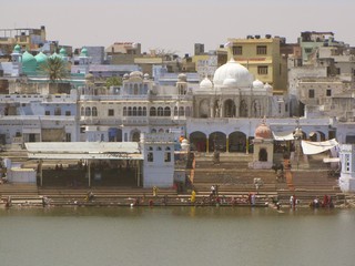 eingeweiht, natürlich durch ohrenbetäubende Lautsprecher. Das imposante an Pushkar ist der heilige See, der umrahmt