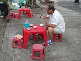 die ihr kleines Restaurant genau in der Mitte einer sehr belebten Kreuzung aufgebaut hat.