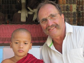 In den Ecken sitzen alte gegerbte Burmesen, mit dicken Zigarren im Mund. Ihre Rauchfahnen und der herbe Duft ziehen um unser Frühstück herum. Ich weiß nicht genau, wo ich mich in diesem Moment befinde, in Marokko in einem alten Suck, in Indien bei den Maharadschas, oder bei Fidel Castro in Havanna. Eins ist klar, sage ich zu Elke, wenn wir hier wohnen würden, wäre das meine Stammkneipe. Die zweite Runde unserer Tempeltour steht an, wieder zu Fuß nur dieses Mal in die andere Richtung. Wir laufen durch viele zerfallene Tempelanlagen, durch restaurierte Pagodas, durch neue Anlagen, die gerade fertiggestellt wurden und welche die gerade gebaut werden. Natürlich mit noch größeren Buddhas, noch größeren Hallen und noch mehr Gold. Ich kann das alles nicht so richtig verstehen, die Menschen hier leben an der Armutsgrenze, haben fast nichts zu beissen und dann dieser Prunk. Sicherlich mache ich mir wieder mal zu viele Gedanken, Louis, sage ich zu mir, auch wenn du es wieder mal nicht verstehst, akzeptiere es einfach.