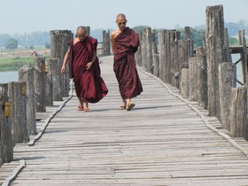 Handschlag besiegelt. Wir wollen zur U Bein Brücke, die längste Teakholzbrücke der Welt, sie ist immerhin