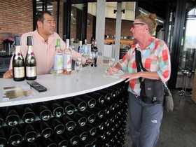 aus eine Weintour gebucht haben, werden mit einem Sparkling Brut Blanc de Blanc auf der Terrasse empfangen.