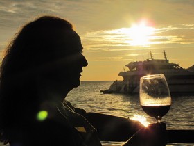 der schon mit einem eisgekühlten Sauvignon Blanc auf uns wartet. Der Sonnenuntergang ist heute