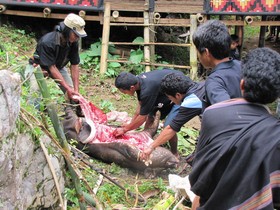 Schweinefleisch im Bambusrohr erleben und wie wir das Massaker der Büffelabschlachtung