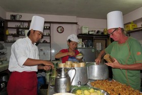 Wasserbüffel beliefert und die Eier kommen aus dem eigenen Hühnerstall. Mit Krishna legen wir die Menüs für