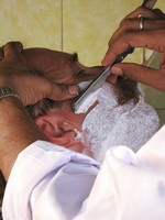 Kunden trocken rubbelt, werde auch ich gesäubert. Nun wird mein Gesicht mit einer milden Creme eingeschmiert, was der