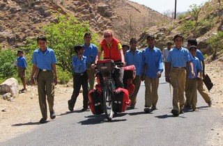Das Schlimmste aber kommt, wenn wir am frühen Morgen mit unseren voll bepackten Fahrrädern und unseren bunten