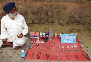 nichts zu reparieren gibt. Kurze Zeit später probiert ein zahnloser älterer Herr die verschiedensten Gebisse aus.