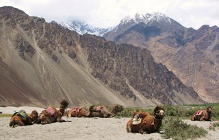 wärmende Sonne. Die 60 Kilometer Abfahrt über Diskit nach Hunder sind Balsam für die Seele und unsere Muskeln. Diskit