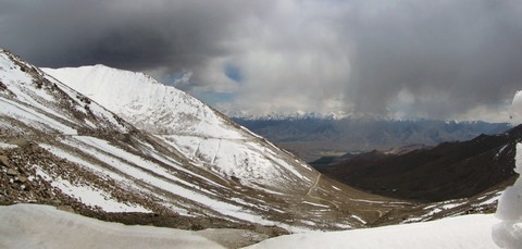 und ich schauen zur anderen Seite ins Nubra Tal, wo dicke Schneewolken hängen. Also keine Zeit verlieren, schnell ein