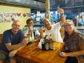 Endlich gehts losHallo Ihr lieben Zuhause Gebliebenen … Vor unseren vergangenen Weltreisen ging es immer sehr hektisch, ja fast dramatisch zu. Bis immer alles gepackt war, die Fahrräder in den Kartons verstaut waren, das Finanzielle geregelt war, die Visa kurz vor der Abreise genehmigt waren, alles das machte mich fast krank. Die Anspannung steigt. Ständig denkst du darüber nach: habe ich alles erledigt, was muß ich noch alles tun. Früher bin ich des öfteren In der Nacht wach geworden, träumte totalen Unsinn. Am Morgen bin ich dann nassgeschwitzt aufgewacht. Tagsüber habe ich mich teilweise nicht mehr unter Kontrolle gehabt. Meine Gedanken waren irgendwo, aber wo waren sie? Die Gefühle haben sich verändert: Hitzewallungen, Schweissausbrüche, Schüttelfrost, Kopfschmerzen, die Ohren gehen zu und sind manchmal wie taub, der Brustkorb zieht sich zusammen, als wolle er das Herz zerquetschen. Im Bauch geht alles drunter und drüber, hier stimmt überhaupt nichts mehr, vielleicht ist es auch der viele Kaffee. Eine Mischung aus Angst und Glücksgefühl die bei mir nicht mehr einzuordnen ist. Ich versuche mich mental einzufangen, aber wie, wenn ich ständig neben mir stehe? Was ist das eigentlich für ein wahnsinniges Gefühl? Wenn ich ehrlich zu mir bin, hatte ich immer ein wenig Muffesausen. Und genauso war es immer bevor es endlich los ging. Und dieses mal - nichts, überhaupt gar nichts, noch nicht einmal ein Gefühlsausbruch. Ich kann das gar nicht verstehen, sage ich zu Elke, wo bleibt das Muffesausen, das Vibrieren und die Anspannung? Elke schaut mich kopfschüttelnd an und sagt: “Erstens haben wir keine Fahrräder dabei, die machen schon mal keinen Ärger am Flughafen oder beim Zoll. Zweitens ist hier in der Pfalz alles geregelt. Drittens sind wir nach all diesen Reisen schon fast wie Profis. Thailand kennen wir fast so gut wie unsere Hosentasche. Viertens haben wir gemeinsam noch nicht einmal 20 Kilogramm bei uns, das macht uns total flexibel. Es ist fast so, als würden wir für kurze Zeit in den Urlaub fahren.” Ja, Elke hatte wiedereinmal recht, selbst das Einchecken in Frankfurt im Terminal 1 am Automaten ist richtig langweilig.