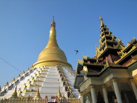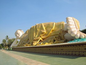 In den Ecken sitzen alte gegerbte Burmesen, mit dicken Zigarren im Mund. Ihre Rauchfahnen und der herbe Duft ziehen um unser Frühstück herum. Ich weiß nicht genau, wo ich mich in diesem Moment befinde, in Marokko in einem alten Suck, in Indien bei den Maharadschas, oder bei Fidel Castro in Havanna. Eins ist klar, sage ich zu Elke, wenn wir hier wohnen würden, wäre das meine Stammkneipe. Die zweite Runde unserer Tempeltour steht an, wieder zu Fuß nur dieses Mal in die andere Richtung. Wir laufen durch viele zerfallene Tempelanlagen, durch restaurierte Pagodas, durch neue Anlagen, die gerade fertiggestellt wurden und welche die gerade gebaut werden. Natürlich mit noch größeren Buddhas, noch größeren Hallen und noch mehr Gold. Ich kann das alles nicht so richtig verstehen, die Menschen hier leben an der Armutsgrenze, haben fast nichts zu beissen und dann dieser Prunk. Sicherlich mache ich mir wieder mal zu viele Gedanken, Louis, sage ich zu mir, auch wenn du es wieder mal nicht verstehst, akzeptiere es einfach.