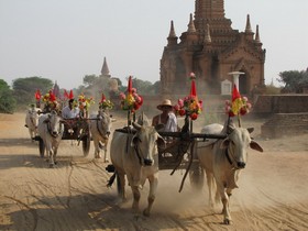 fährt, wo jeder zweite Burmese noch mit seinem Ochsenkarren sein Reisfeld bearbeitet.