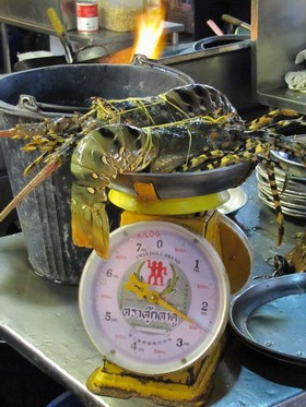 Nachtmarkt besteht. Wir trauen unseren Augen kaum, so viele Langusten, Riesen-Prawns, Austern und eine