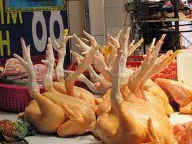 überdachten Halle wieder, in der es mindestens 20 verschiedene Essensstände gibt. Ich entscheide mich