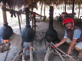 Da heute Nacht das Endspiel der Fußballweltmeisterschaft Deutschland-Argentinien stattfindet, suchen wir nach einem Hotel mit einem Fernseher. Die normalen Gästehäuser haben alle keinen Fernseher, also müssen wir in der mittleren oder sogar in der gehobenen Hotelklasse Ausschau halten, was sehr teuer werden kann. Das neu erbaute Grand Wisata Hotel scheint uns mit seiner protzigen Eingangshalle geeignet zu sein. Die erste Frage, die ich dem Empfangschef stelle: “Haben sie in ihrem Hotel einen Fernseher und wird heute Nacht das Fußballendspiel übertragen?” Achselzuckend und kopfschüttelnd sagt er, weiß nicht, kann sein. Na super, der hat wieder mal keine Ahnung. Auf der ganzen Welt wird das Endspiel im Fernsehen übertragen, warum also nicht hier. Über dem Empfangsschalter hängen drei große Uhren mit jeweils einer Stunde Unterschied. Die linke Uhr zeigt die Zeit von Papua an, die mittlere ist von Flores und die rechte von Java. Indonesien hat drei Zeitzonen und wer kann mir sagen, wann heute Nacht das Fußballspiel beginnt? Wieder ein Achselzucken und ein weiß nicht, ich glaube um Mitternacht. OK, sag ich, wir nehmen das Zimmer, umso mehr bin ich erfreut, das ich im TV1 höre, dass das Endspiel live übertragen wird. Meine Stimmung steigt, ich mache mich auf den Weg zum Supermarkt, um ein paar Bierchen für die Nacht zu besorgen, jetzt kann ja eigentlich nichts mehr schief gehen. Da Elke sich nicht für das Spiel interessiert, sitze ich kurz vor 24 Uhr nervös alleine vorm Fernseher. Es ist schon nach 24 Uhr und immer noch kein Anpfiff, naja denke ich, dann wird es doch erst um 1 Uhr losgehen. Nach langem hin und her und unzähligen Fußballwiederholungen ist es endlich 1 Uhr und immer noch kein Anpfiff. Als wir wieder über der Zeit sind, werde ich langsam sauer und Elke auch, da sie mein ständiges Gejammere nicht mehr hören kann. Um kurz vor 2 Uhr kann ich die Augen kaum noch aufhalten. Als ich die Einblendung sehe, dass in 60 Minuten das Endspiel beginnt, schalte ich den Fernseher aus und stelle mir den Wecker auf zehn vor drei, das Gebimmel reißt mich und Elke aus dem Halbschlaf. Endlich ist es so weit, Deutschland und Argentinien stehen auf dem Platz, der Schiedsrichter nimmt seine Pfeife in den Mund und genau in der Sekunde flimmert der Fernseher schwarz-weiß. Geschockt starre ich auf den Fernseher, das glaube ich nicht, das darf doch alles nicht wahr sein, schreie ich laut vor mich hin, die ganze Welt schaut Fußball und ich sitze hier vor einem schwarzen Kasten. Da klingelt auch schon das Telefon, der Nachtportier bittet mich zur Rezeption zu kommen, meine Stimmung wird wieder besser, sicherlich haben die ein anderes Programm, so hoffe ich. In der Empfangshalle werde ich schon erwartet, vor dem Hotel stehen mindestens zehn Motorradfahrer im strömenden Regen, die alle auf mich warten. Bevor ich das Ganze überhaupt realisiere, was denn eigentlich los ist, sitze ich auf einem Motorrad. Mit einem Affenzahn rasen wir durch die dunkle Stadt, durch enge Gassen und Hinterhöfe, bis ich in einem Innenhof eine große leuchtende Leinwand erkenne. Triefend nass lädt mich mein Fahrer ab, sofort werde ich von zirka 80 Fußballfans, allesamt in blaue argentinische Trikots gekleidet, begrüßt. Ich kann es fast nicht glauben, auf der Leinwand sehe ich das Fußballspiel Deutschland gegen Argentinien und ich bin der einzige Deutschlandfan, wenn das mal gut geht. Die Jungs sind alle alkoholisch gut drauf und so werden viele Späße gemacht, was mich ein bisschen an das Spiel Deutschland gegen Portugal in Sulawesi erinnert. Alle sind natürlich sehr zuversichtlich, dass die Argentinier gewinnen, umso mehr sind alle geschockt, als in der Verlängerung ein Tor für Deutschland fällt. Nach dem Abpfiff bekomme ich fairerweise von jedem einen Handschlag und mein Motorradfahrer bringt mich um 6 Uhr am Morgen wieder in unser Hotel zurück. Elke schaut mich mit verschlafenen Augen an und fragt, wer hat gewonnen, du wirst es nicht glauben, wir sind Weltmeister. Die Wetterprognosen sind nicht gut, deshalb beschließen wir, den Rückweg anzutreten. Die Fahrt nach Bajawan über den ersten Vulkan ist regnerisch, kalt und gefährlich. Wir nisten uns in unserem alten Hotel Silverin ein, wo wir uns bei einer heißen Suppe aufwärmen. Am Morgen wird das Wetter besser und als die Sonne zum Vorschein kommt, macht das Motorrad fahren wieder richtig Spaß. Vorbei an den winkenden Schnapsbrennern fahren wir bis nach Cancar, hier will Elke sich unbedingt die berühmten Spinnennetz-Reisfelder anschauen. Die Felder sind Strahlenförmig angelegt und haben dadurch eine ganz spezielle Bewässerungsfunktion Zudem sind die Peitschenkämpfe, auch Cacil genannt, als alte Rituale hier in der Gegend bekannt, sie werden bei Hochzeiten und dem Erntedankfest aufgeführt. Die letzte Übernachtung ist wieder in Ruteng, wo ich wieder zum Schwesternheim Wisma Santa Maria gehe und diesmal haben wir Glück. Wir bekommen ein kleines Zimmer, das sehr sauber ist, allerdings bohren sich die Eisenfedern der Matratze in der Nacht ganz langsam in unsere Körper. Nebenan gibt es tatsächlich die Mission des Heiligen Aloisius, doch der hilft uns am nächsten Morgen, bei unseren Schmerzen auch nicht. Zurück in Labuan Bajo suchen wir uns eine Unterkunft weit weg vom Stadtkern und weit weg von allen Moscheen. Es ist immer noch Ramadan und die nächtlichen Gesänge werden immer lauter und intensiver.